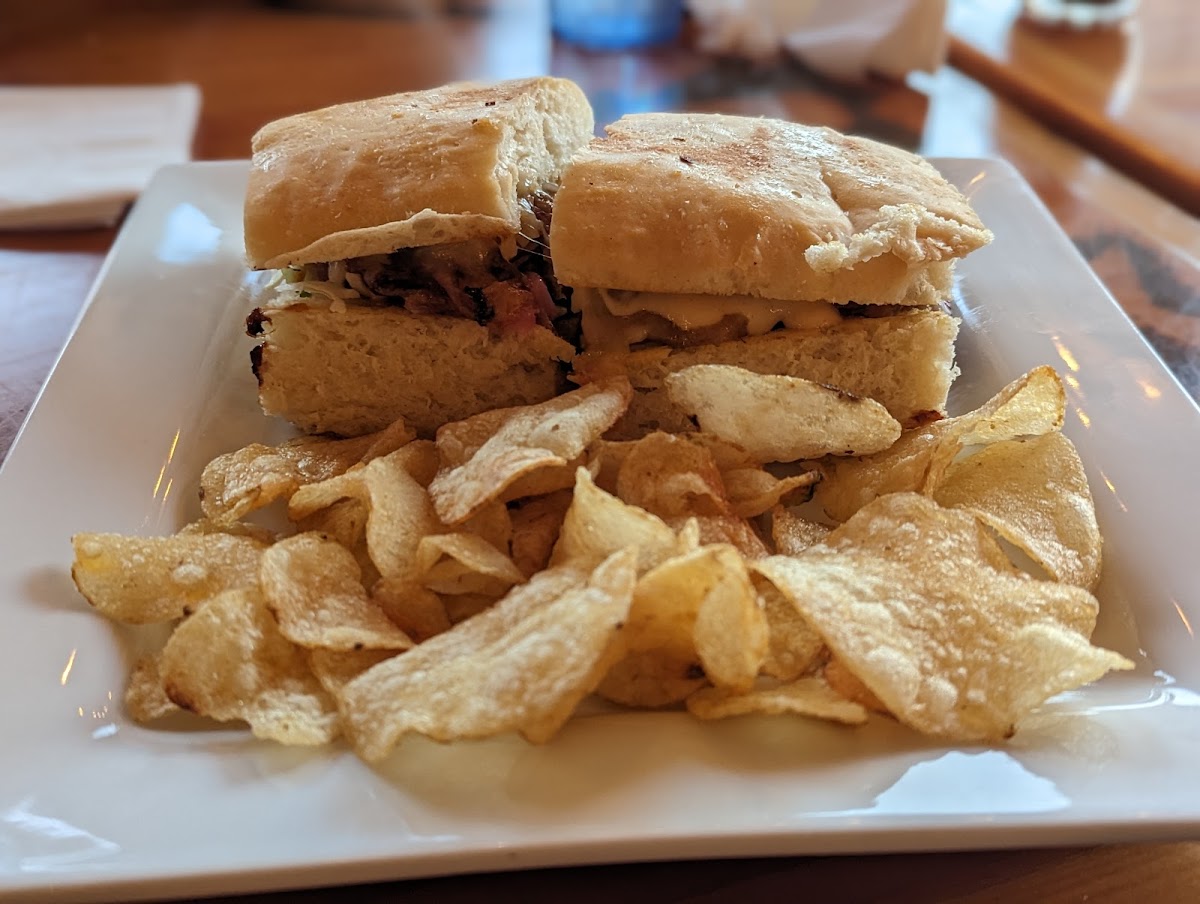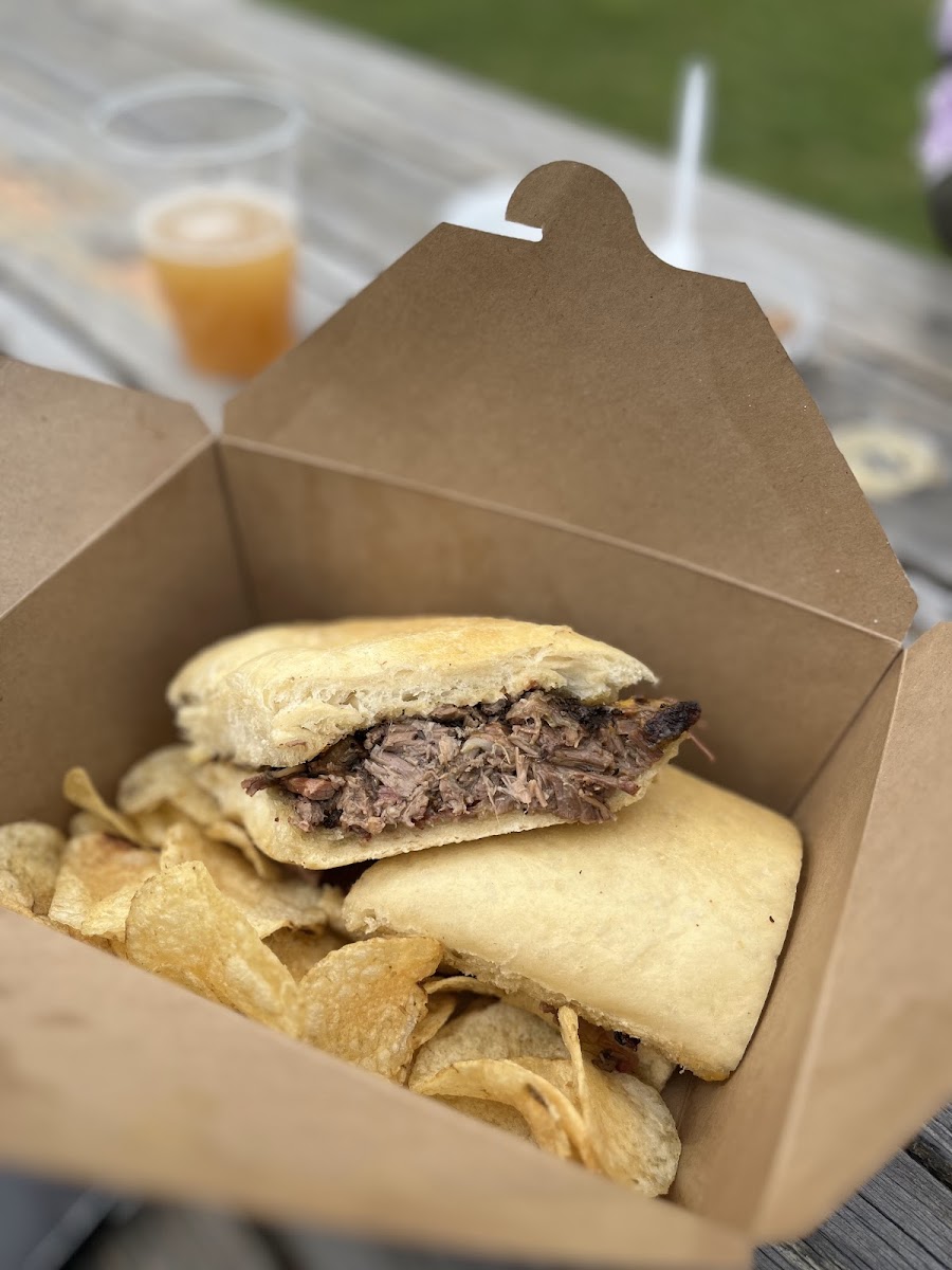 First time here, and even though it's a 30+ minute drive, we will be back. We ordered the BBQ platter to share with two of us. It comes with pulled pork, brisket, and a sausage. For sides it's brisket Mac and cheese, pickled veggies, potato salad and fresh bread. The only complaint was that the portion of potato salad was a little small. The bbq sauce was perfect, just the right amount of sweetness. The meat was fall apart flavorful and everything else was just delicious. On the menu board I saw that they had a spiced apple crisp for desert and I had to have it. It came hot and ala mode and I wish I could have one everyday-it was delicious! Can't wait to return!!